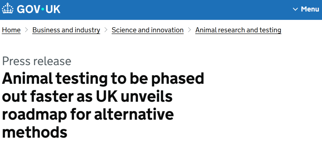 11月11日,英国政府发布《科学试验中的动物替代:支持替代方法开发、验证与应用的路线图》,以清晰的行动框架推动非动物测试方法落地。