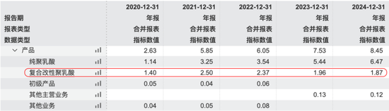 这些为下游应用开发的产品,都归类为“复合改性聚乳酸树脂”收入,2024年收入为1.87亿。