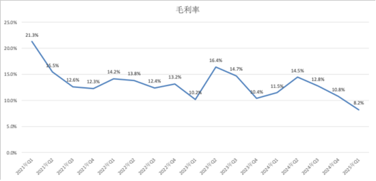与此相对应,2024年毛利率为12.71%,相比2023年减少0.33百分比,2025年1季度继续下探到8.2%。