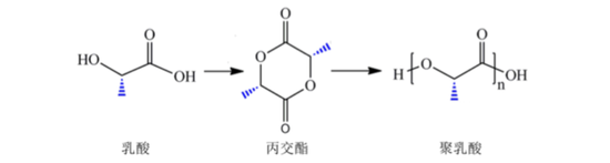 “乳酸-丙交酯-聚乳酸”的两步法原理)