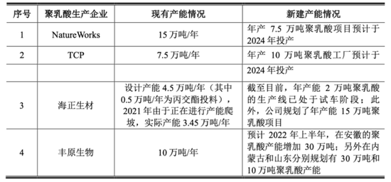 (聚乳酸同行的扩张,2022年招股说明书)