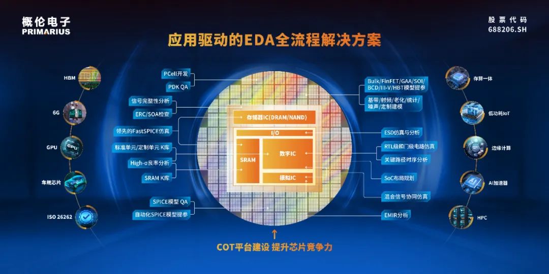 赋能芯片设计客户强化COT能力,支持SPICE模型和PDK二次开发与标准单元库重构(Re-K),增强企业技术自主性和差异化竞争力。