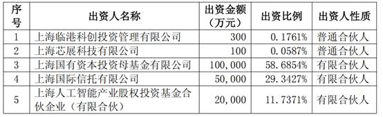 受让方背景方面,上海芯合创成立于2025年1月,基金管理人为上海临港科创投资管理有限公司,首期实缴15.68亿元,出资结构凸显浓厚国资色彩。其第一大出资方为上海国有资本投资母基金有限公司,出资10亿元,占比58.69%;上海国际信托有限公司、上海人工智能产业股权投资基金合伙企业(有限合伙)分别出资5亿元、2亿元,占比29.34%、11.74%。基金实际控制人为上海市国有资产监督管理委员会,国资属性鲜明。