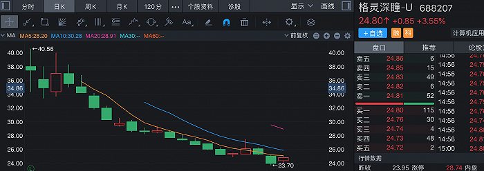 从盘面上看,格灵深瞳还是有超过发行价39.49元的时候,那就是上市的第一天和第三天,时机也是稍纵即逝。