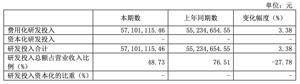 研发投入 5710 万,去年同期 5523 万:
