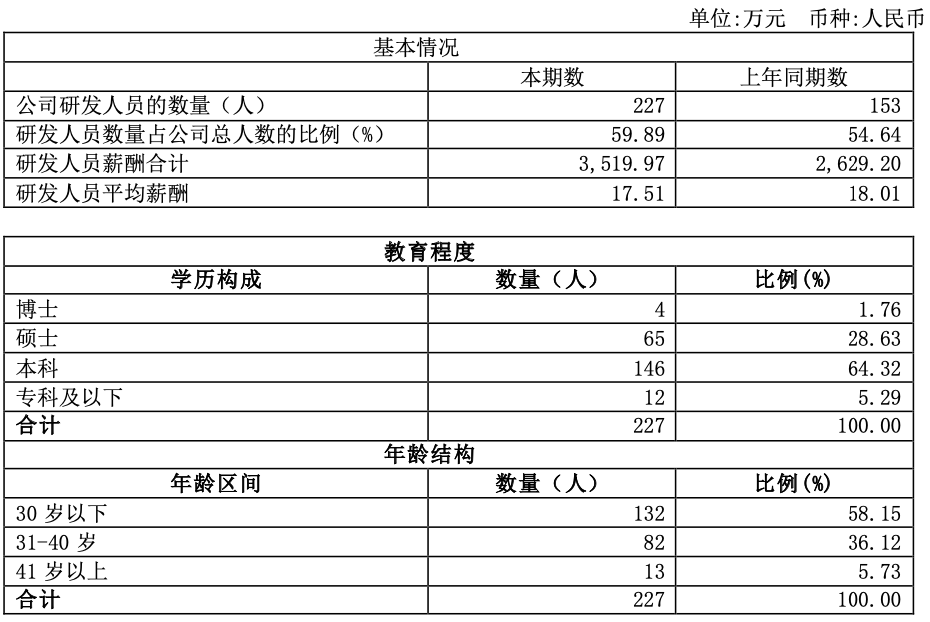 研发共 227 人,平均薪酬 17.51 万:
