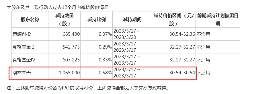 就在格灵深瞳解除限售的首日以来,上述三家股东均已有较小幅度的减持动作。17日,与真格基金Ⅰ存在一致行动人关系的真格基金IV以32.27元的价格清仓其持有的607225股,减持比例为0.33%。同日,真格基金Ⅰ以同样的价格抛出格灵深瞳542775股;澳林春天减持更为“豪迈”,以更低的价格30.54元减持1065000股。
