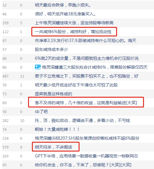 对于格灵深瞳股东减持,投资者的态度出现一定分歧。有投资者称之为“急不可待的减持,几十倍的收益”,也有投资者表示,“减持利好,增加流动性”。