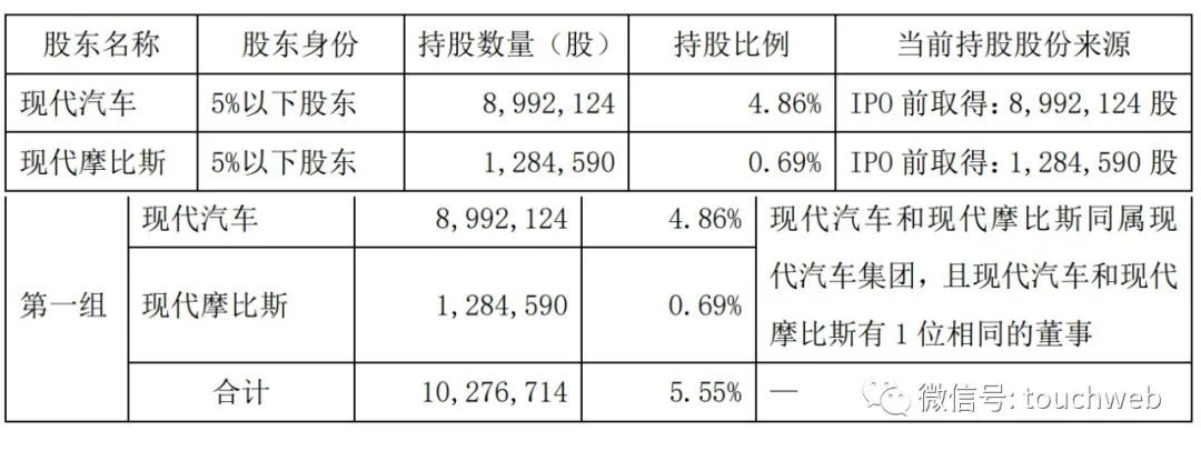 截至目前,现代汽车、现代摩比斯一共持股为5.55%。