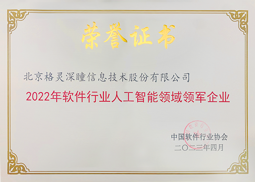 格灵深瞳荣获“软件行业人工智能领域领军企业”奖项