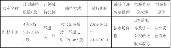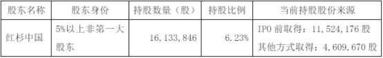 截至公告披露日,红杉中国持有公司股份16,133,846股,占公司总股本的6.23%。上述股份均来源于公司首次公开发行前持有的股份及上市后资本公积转增股本取得的股份,且已于2023年3月17日解除限售后上市流通。