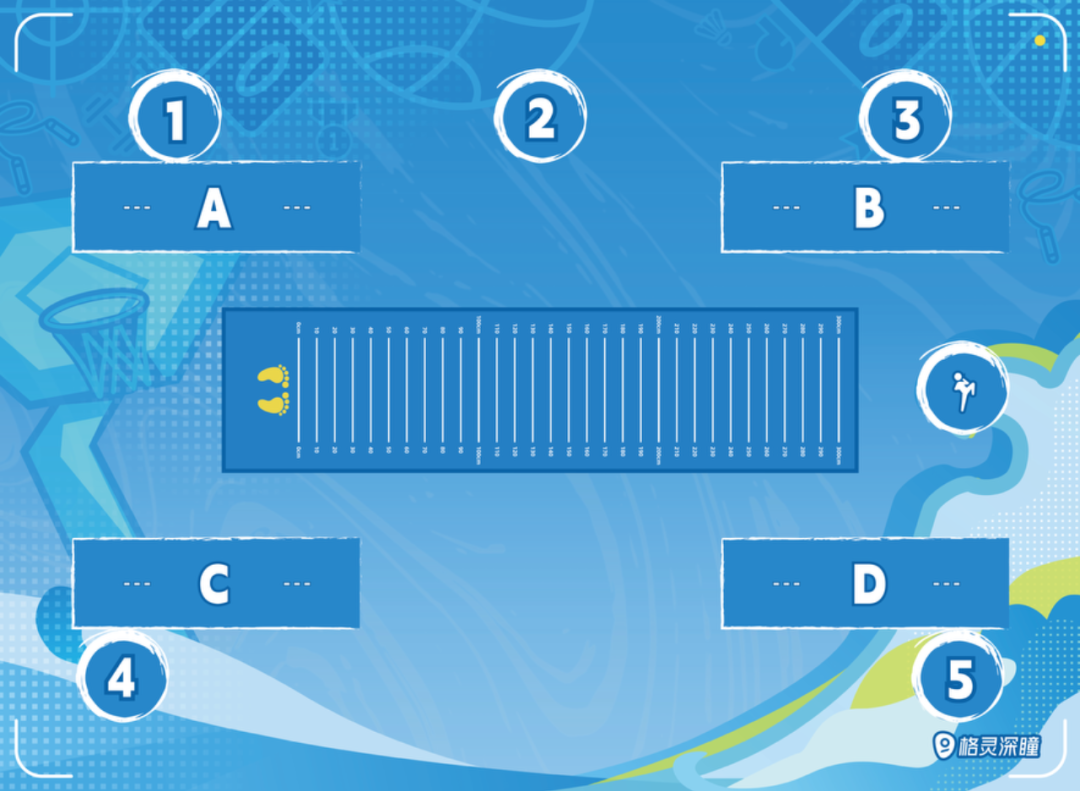 新增地垫、成绩显示屏等配套配件,让设备安装更快捷,学生操作更直观,站在指定区域,屏幕自动提示“准备开始”,运动数据实时滚动,简化操作流程,降低使用门槛。