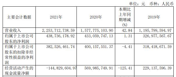 2022年6月18日,道通科技发布的2021年年度报告(修订稿)显示,报告期内,公司实现营业收入22.54亿元,同比增长42.84%;归属于上市公司股东净利润4.39亿元,同比增长1.31%;归属于上市公司股东的扣除非经常性损益的净利润3.83亿元,同比减少4.41%;经营活动产生的现金流量净额-1.45亿元,同比减少125.41%。