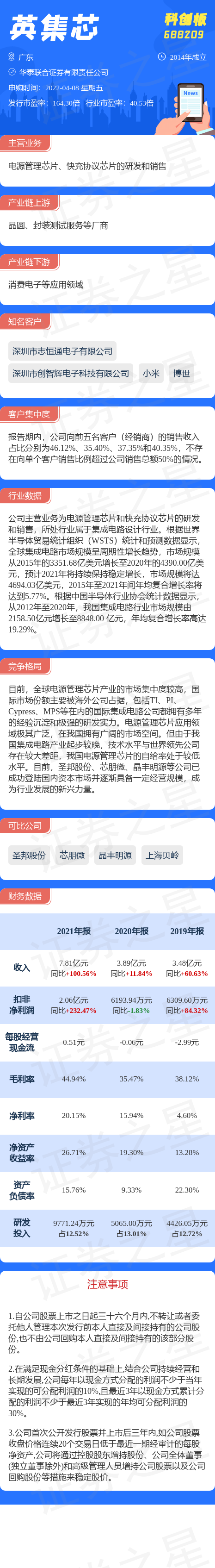 英集芯4月8日网上申购,申购代码为787209,中签号公布日期为4月12日。该股概况请见下图: