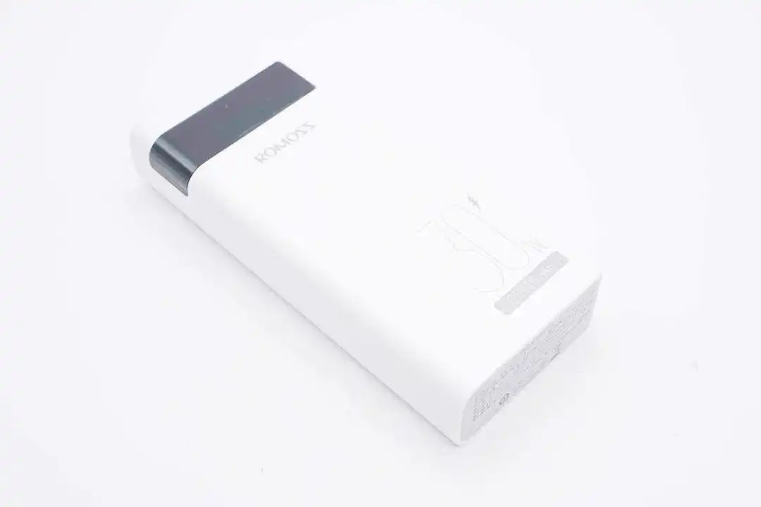 这款移动电源采用PC材质白色外壳,边角过渡圆润,在白色衬托下充电宝整体显得格外简洁。