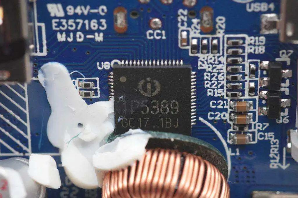 这款移动电源内置的英集芯IP5389芯片如图所示。