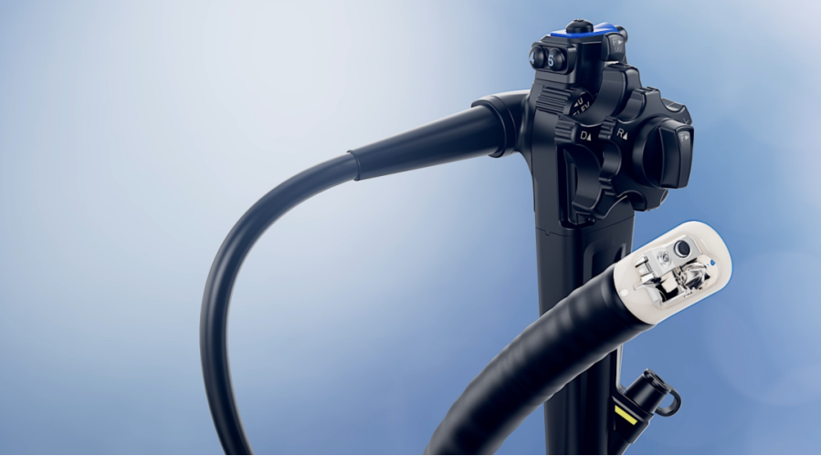 全新的十二指肠镜可以搭配4K超高清内镜系统AQ-300及本次最新发布的AQ-200 Elite内镜系统使用。新十二指肠镜可呈现高质量画像,并具有较大的抬钳器角度。值得注意的是,这款十二指肠镜创新性地使用了一次性先端帽及将抬钳器驱动连杆式密封的设计,可进一步增强洗消效率及安全性。