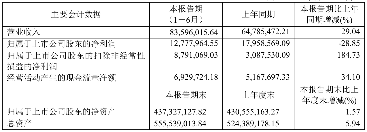 挖贝网8月20日,瑞晟智能(688215)近日发布2021年半年度报告,报告期内营业收入83,596,015.64元,同比增加29.04%;净利12,777,964.55元,同比净利减少28.85%。