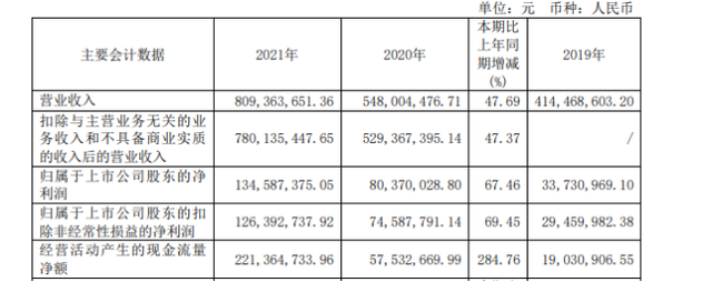 集微网消息(文/陈薇)4月18日,气派科技发布2021年年度报告称,公司2021年全年实现营业收入8.09亿元,同比增长47.69%;归属于上市公司股东的净利润1.35亿元,同比增长67.46%;归属于上市公司股东的扣除非经常性损益的净利润1.26亿元,同比增长69.45%。