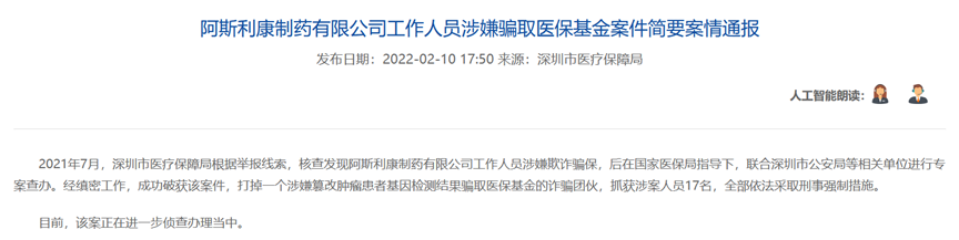 或被“卷入”阿斯利康骗保案