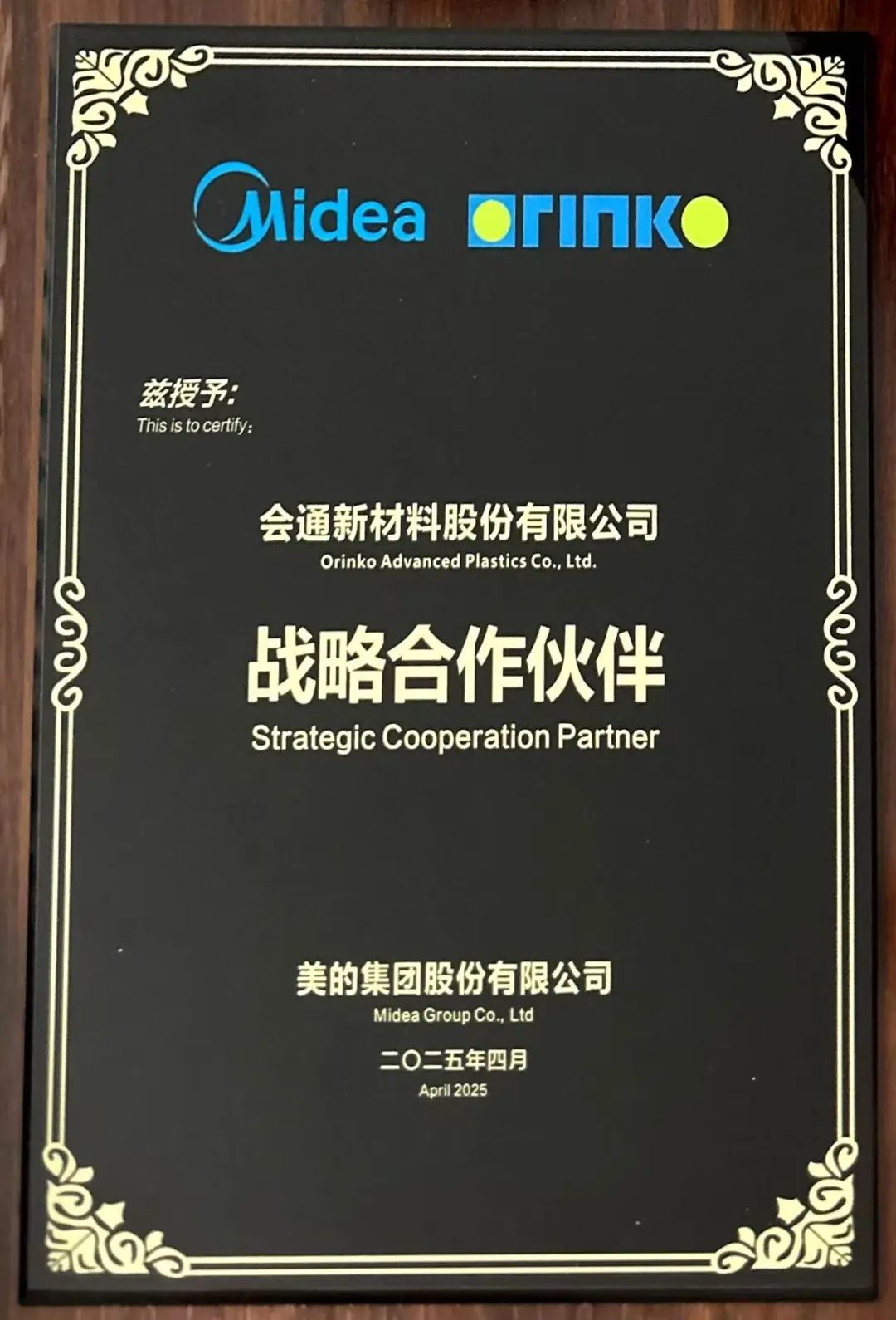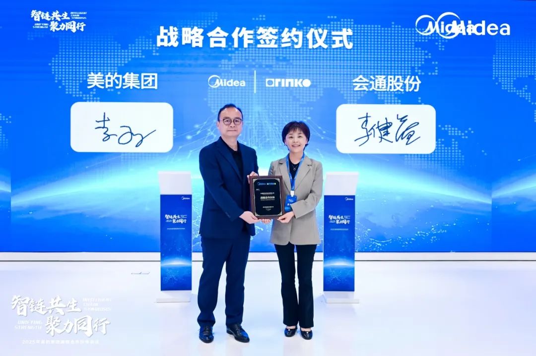 2025年4月18日,美的集团以“智链共生,聚力同行”为主题的战略合作伙伴会议在顺德总部盛大举行。会通股份凭借在材料领域的深厚技术底蕴与持续创新能力,成功荣获美的集团“战略合作伙伴”殊荣,成为美的集团首批战略合作伙伴,开启双方深度合作的崭新篇章。