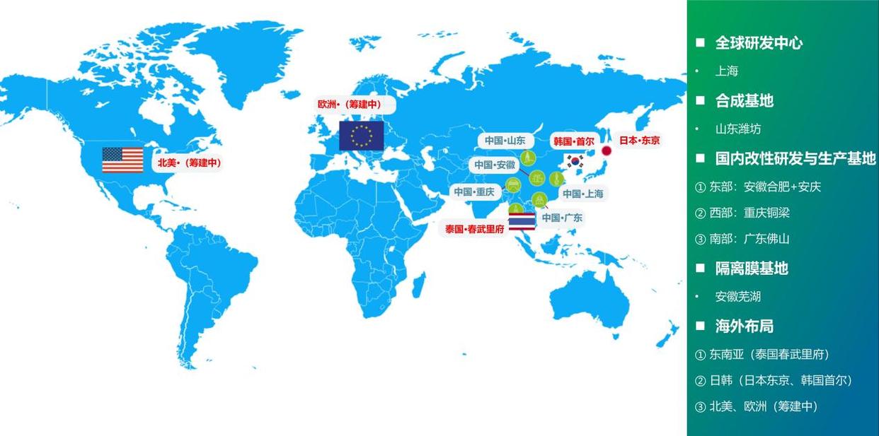在复杂多变的地缘政治环境中,全球产业链安全变得尤为重要,国际化布局成为企业壮大的必由之路。公司结合高分子材料行业自动化程度高、可快速复制的特点,稳步推进全球小规模工厂布局,形成具有抗风险能力的“多基地+本地服务”体系。