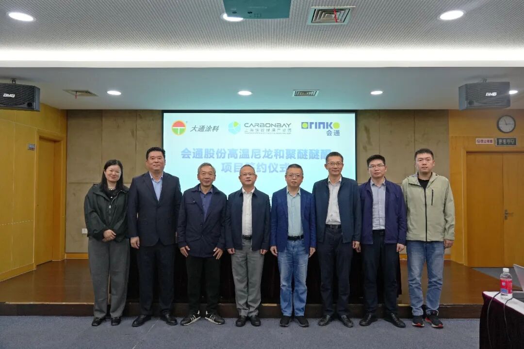 2025年10月24日,会通新材料股份有限公司(以下简称“会通股份”)与上海金山第二工业区投资有限公司、上海大通会幕新型节能材料有限公司正式签订《租赁项目管理协议书》,标志着公司“高温尼龙和聚醚醚酮(PEEK)聚合项目”成功落户上海碳谷绿湾产业园。会通股份首席技术官秦怀礼、大通会幕副总经理季之泉、碳谷绿湾公司党委副书记、总经理俞曙明作为签约代表出席仪式。