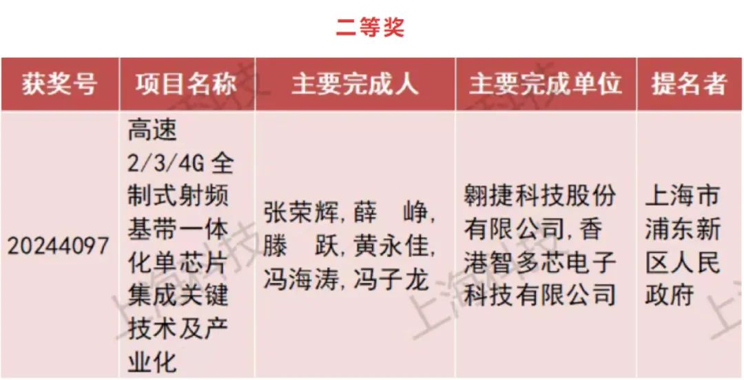 上海市科学技术奖由上海市人民政府设立,重点奖励在科学发现和技术发明方面具有原始性创新价值的成果,以及对推动经济发展方式转变、培育战略性产业、促进城市安全与生态健康发展、提升区县创新能力和经济发展具有重大贡献的科技成果。2024年度上海市科学技术奖共收到614项科技进步奖提名项目,经过激烈角逐,最终有97项通过复评。翱捷科技作为其中仅有的3家芯片类项目之一成功入选。