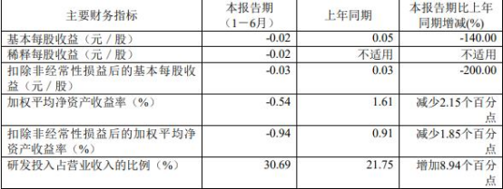 报告期内,公司基本每股收益-0.02元/股,同比减少140.00%,加权平均净资产收益率-0.54%,比上年同期减少2.15个百分点。