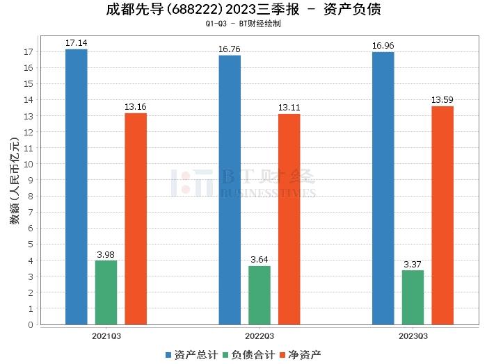 从资产负债方面看,成都先导2023年三季度的总资产达到16.96亿元,相较于上年度末的16.69亿元,有所增长。负债合计3.37亿元,较上年度末的3.42亿元略有下降。净资产达到13.59亿元,较上年度末的13.27亿元有所增加。公司的资产负债率为19.86%,较上年度末的20.48%有所下降,显示出公司负债管理的效果。