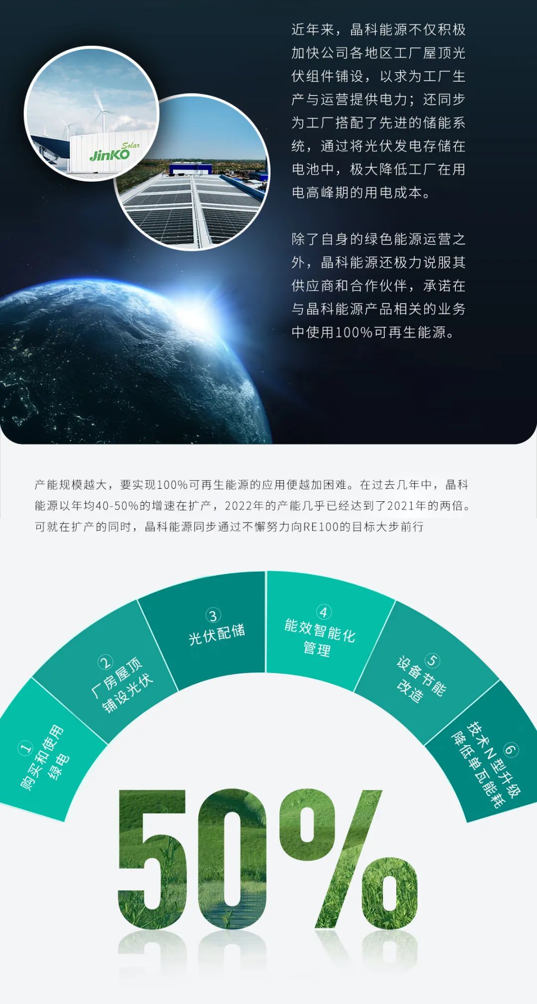 RE100先锋实践|晶科能源在全球光伏企业中率先实现绿电比例突破50%