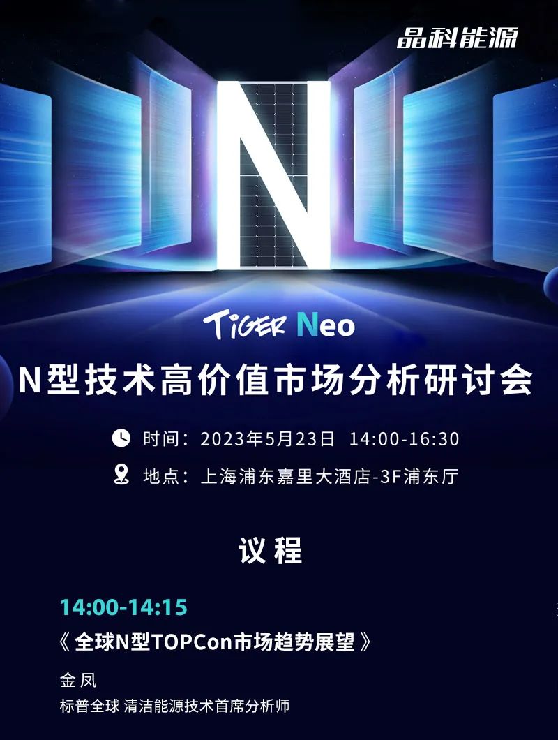 5月23日,由全球极具创新力的光伏企业晶科能源主办的“N型技术高价值市场分析研讨会”将在上海召开。作为下一代主流光伏发电技术,N型技术的快速渗透为行业发展带来了质的飞跃,推动了光伏行业进入了新一轮的产业变革周期。面对市场快速爆发态势,TOPCon技术高价值愈发凸显。晶科能源举办此次活动旨在与行业大咖一起,共享光伏领域N型技术的最新研究成果和产品应用,共探能源产业的未来发展趋势。