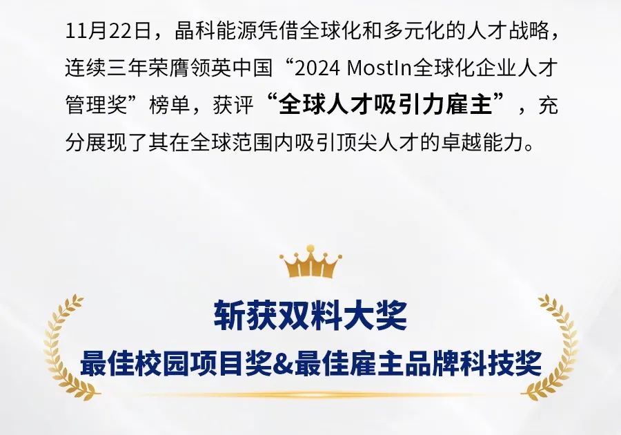 步履不停,高光再续!晶科能源连获四项雇主荣誉!