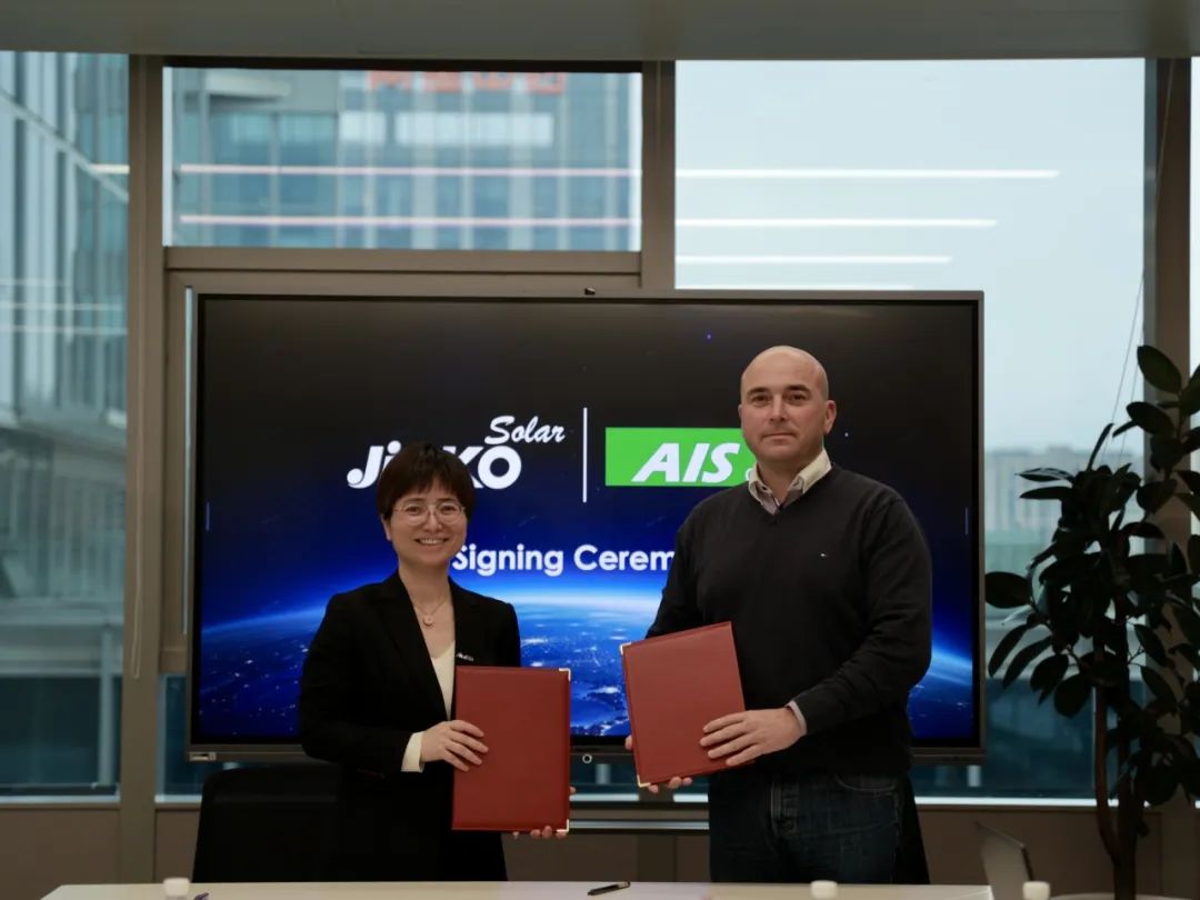 近日,全球领先的光储企业晶科能源与德国 AIS GmbH公司举行战略签约仪式,双方正式启动德国 66.5MWh 光伏+储能项目交付。晶科储能副总裁与AIS GmbH公司首席执行官共同出席签约活动,并就项目交付周期、本地化运维服务及未来合作规划展开深入交流。此次签约标志着晶科推动全球可再生能源解决方案的又一重要里程碑,其以客户需求为导向的技术创新体系与全球化服务能力再次获得权威验证。