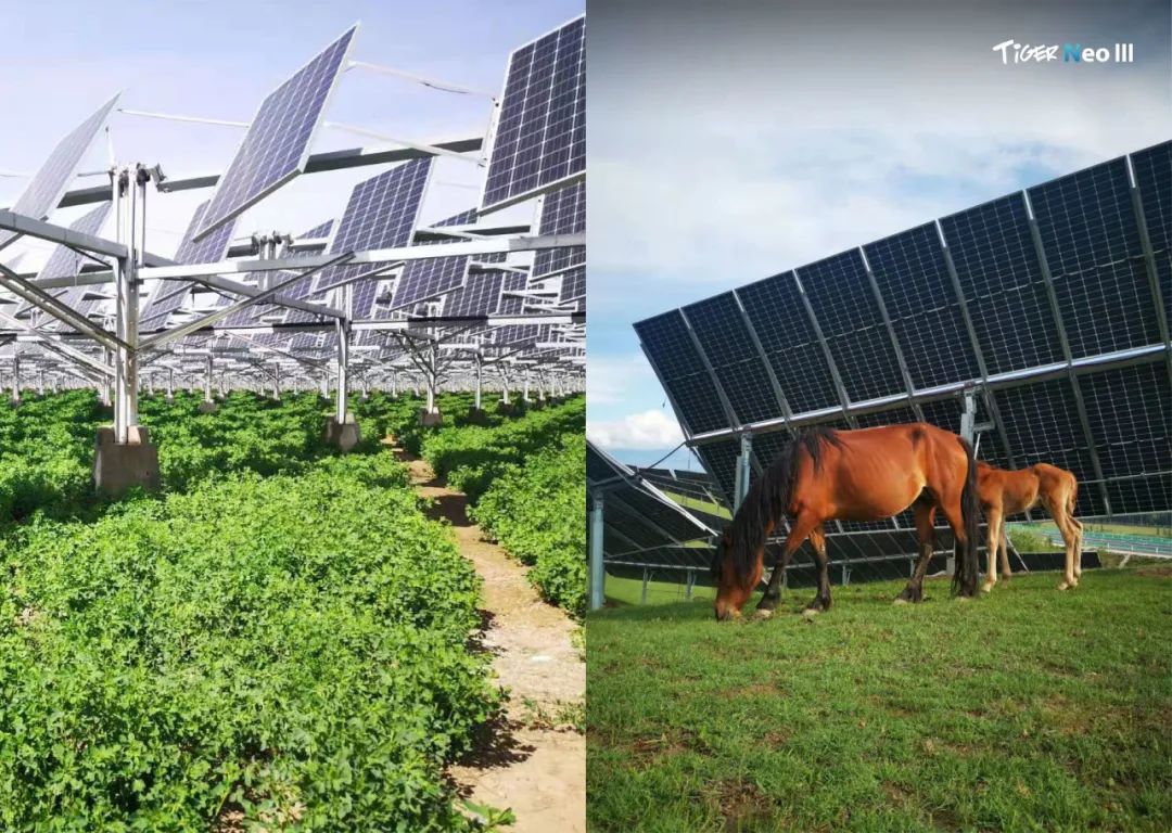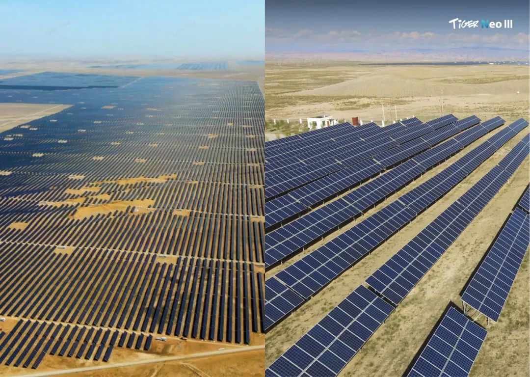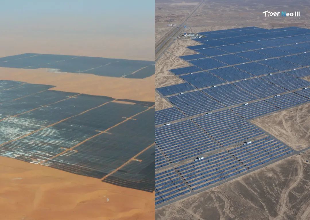 作为全球领先的光储企业,晶科能源以N型TOPCon技术为核心,依托50GW+光伏治沙项目经验,累计治理沙地面积超90万亩,600平方公里,相当于中国最大沙漠-塔克拉玛干沙漠千分之二的面积,成为全球治沙规模最大的光伏企业之一,构建起了"光伏+生态修复"沙漠治理新模式,为全球沙戈荒治理提供中国方案。