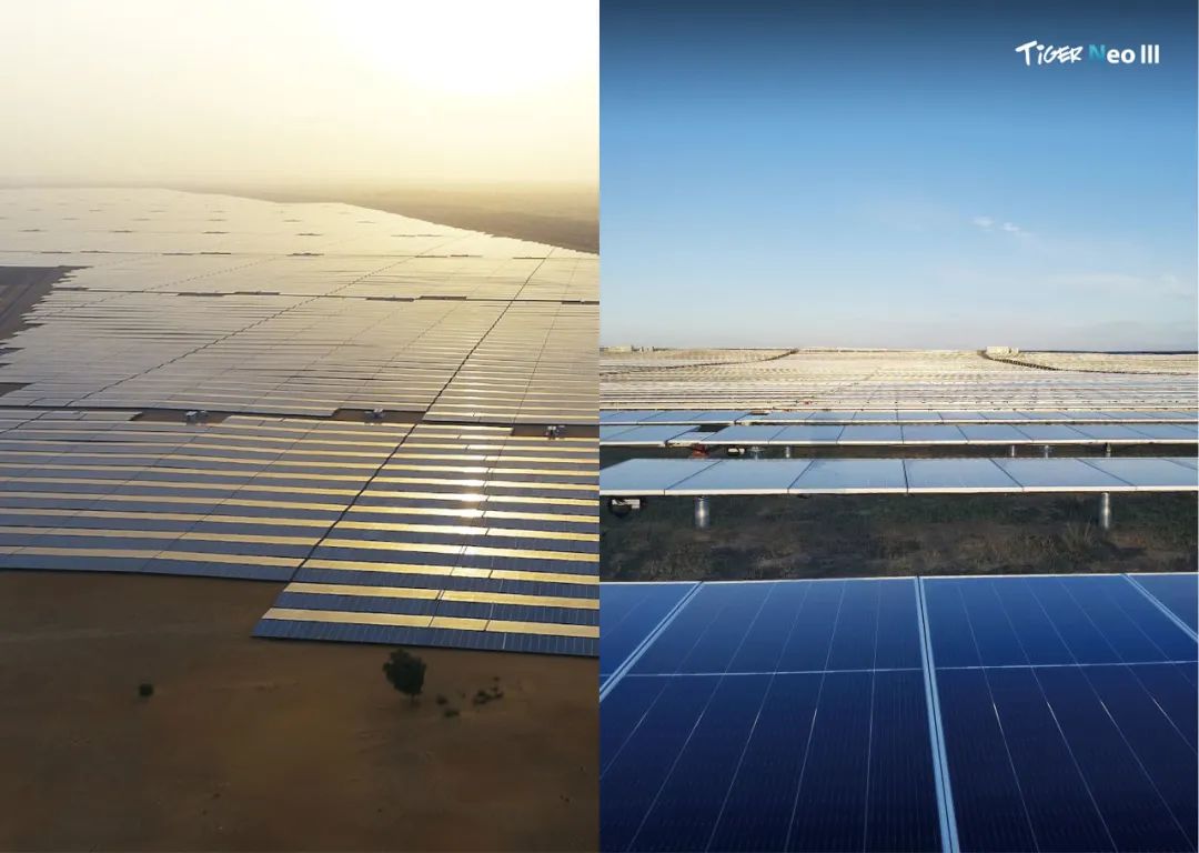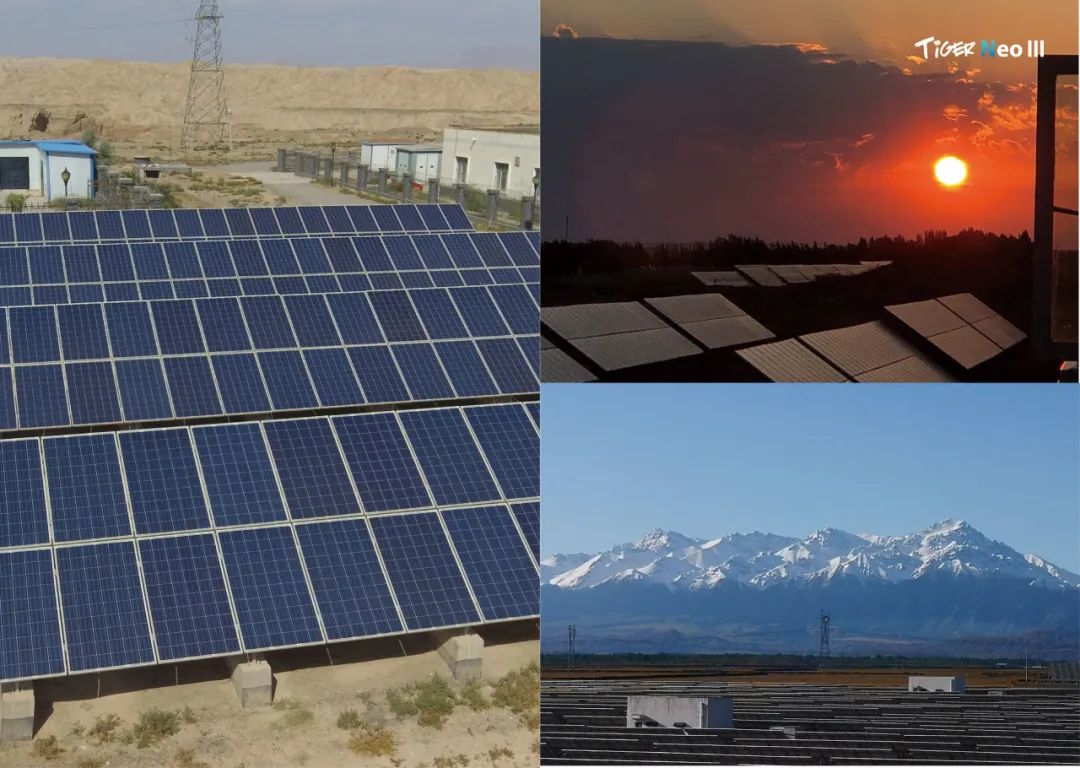 沙漠地区虽光照资源丰富(年辐照量超6000MJ/m2,日照时数超3000小时),但极端环境对光伏系统提出严苛挑战:夏季地表温度超60℃、紫外线强度高、沙尘暴频繁、机械载荷压力大等。晶科能源凭借N型TOPCon技术及全球领先的研发能力(累计申请专利近4200项,获得授权专利超2800项,其中N型TOPCon专利462项),以四大核心优势赋能治沙场景:
