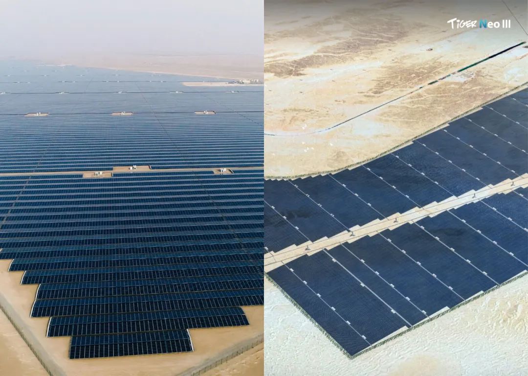作为全球累计组件出货量超300GW,6次夺得光伏行业出货第一的标杆企业,晶科能源依托数字化管理平台,将中国治沙经验输出至沙特、阿曼等中东国家。例如,沙特1.75GW光伏治沙项目采用晶科TOPCon双面组件,通过“板上发电、板下固沙”模式,同步推动中东“绿色转型”。未来,公司将持续以领先光储技术,助力全球荒漠化治理,让每一片沙海成为绿色能源与生态复苏的沃土。