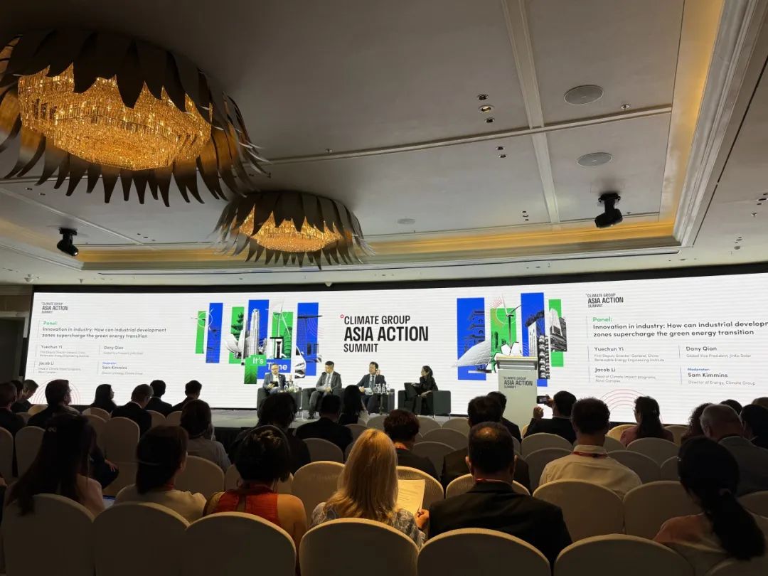 在峰会“工业领域的创新:如何加速亚洲工业园区绿色能源转型”对话环节中,晶科能源全球副总裁钱晶与中国水电水利规划设计总院总经理易跃春等其他行业领军人物展开深入探讨。