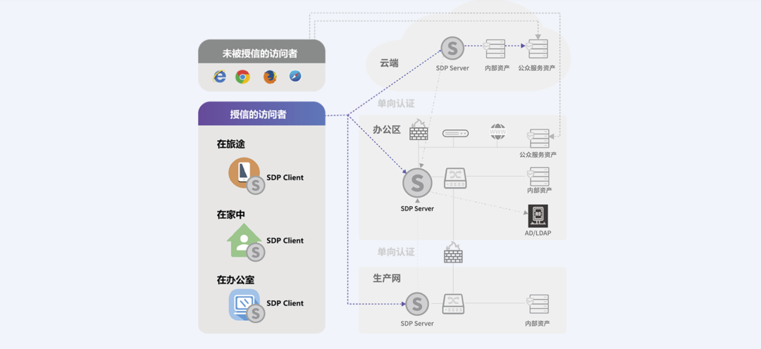 亚信安全信磐零信任访问控制系统(AISDP)是一款基于零信任架构的安全接入管理产品,以数字身份作为安全边界管理的基础,采用了最小化授权、多维度安全评估手段来保护业务和服务的暴露面,有效应对新形势下安全威胁。此外,信磐零信任访问控制系统(AISDP)还通过网络隐身、多因素认证、终端动态环境检测、权限访问控制等核心能力,实现身份可信,终端可信、通道可信、访问可信的网络安全新架构,为企业远程办公提供可以信赖的数字安全边界。