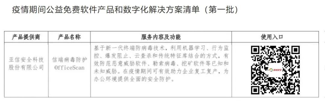 目前,亚信安全数字化安全防护及运营一体化方案已入选上海市疫情期间公益免费软件产品和数字化解决方案清单: