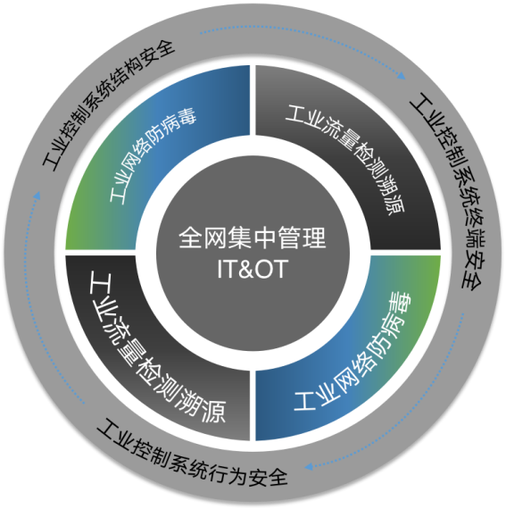 为此,亚信安全基于工控资产识别能力、安全威胁检测、工业异常行为监测以及新型威胁溯源分析能力,遵循“适度防护、重点防护”原则,结合油气行业业务场景特点,形成资产清晰、风险可视、全局防护、流程化处置的“四化一体”工控安全管控思路,构建“可管可控可视”的新型工业安全技术体系,覆盖安全风险的“事前、事中、事后”全流程处置和管理,强化安全运维,提升安全能力,切实保障生产业务正常运行。