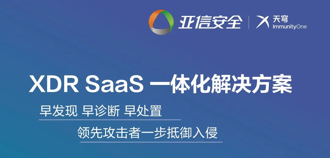 活动现场,亚信安全通过对EDR云化交付及威胁狩猎服务的技术细节分析,展示了天穹ImmunityOne带来的全新价值。天穹ImmunityOne以“探针层”、“EDR系统层”和“MDR平台层”三层架构为支撑,形成了集威胁数据汇总、威胁分析、威胁遏制与修复,以及远程专家运营服务为一体的SaaS化系统,实现对未知威胁的“早发现”、“早诊断”和“早处置”,极大地缩短对攻击行为的识别和危害修复周期,领先攻击者一步抵御入侵。