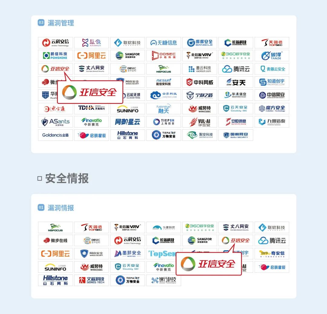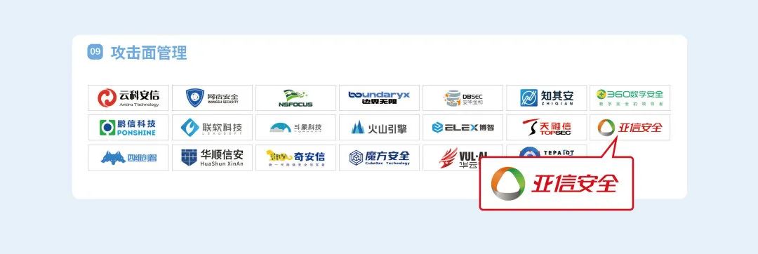 成功入选攻击面管理细分领域。为了有效应对未知威胁,亚信安全以攻击者视角全面理清企业暴露在互联网中的数字资产;通过常规检测、脆弱性检测、威胁情报、威胁定位等方式,评估和分析资产属性,确定数字资产存在的风险、脆弱性或异常行为,为企业提供全方位的安全防护。