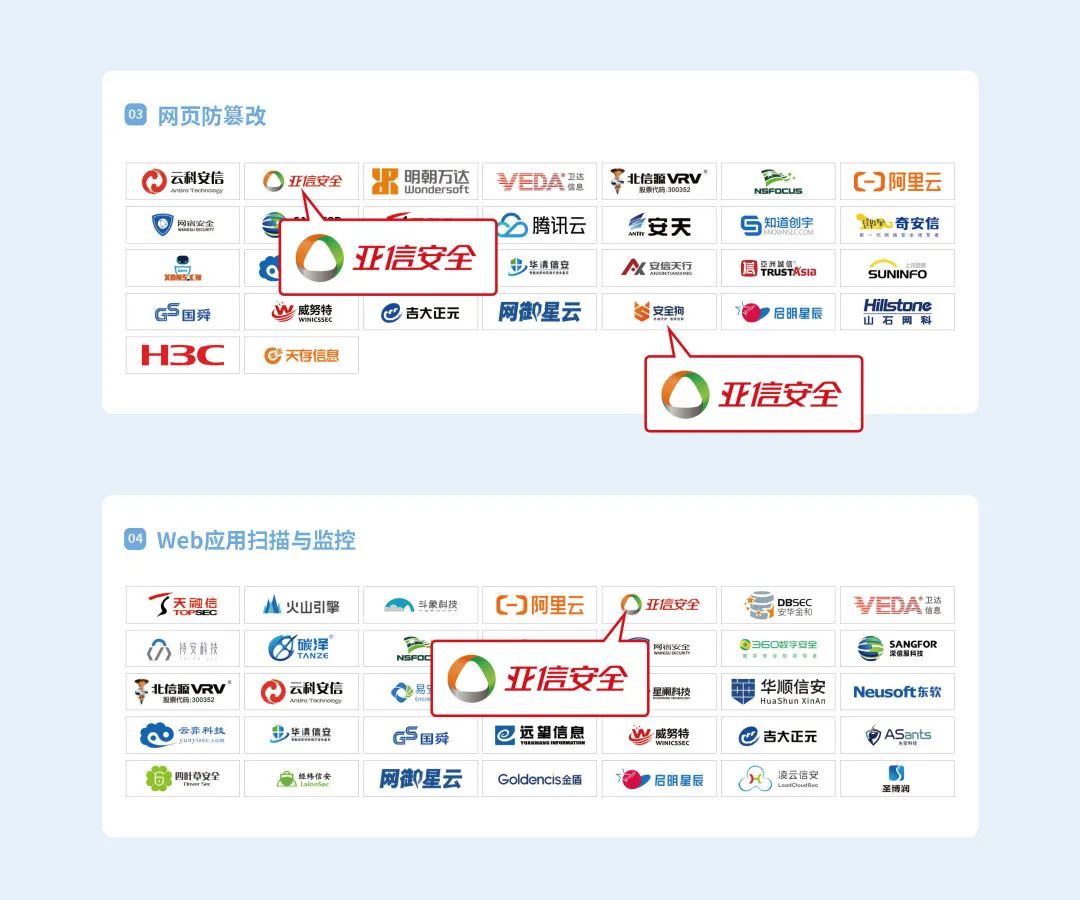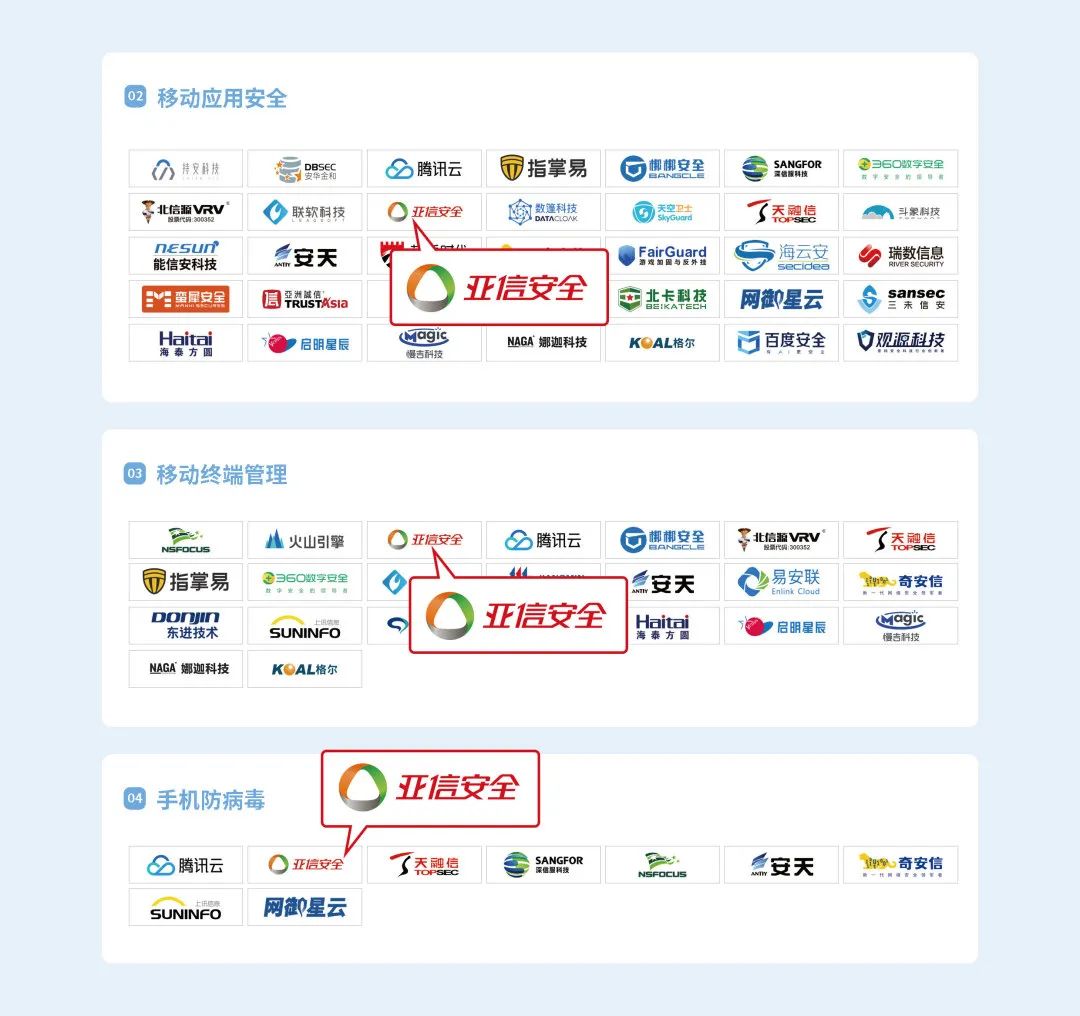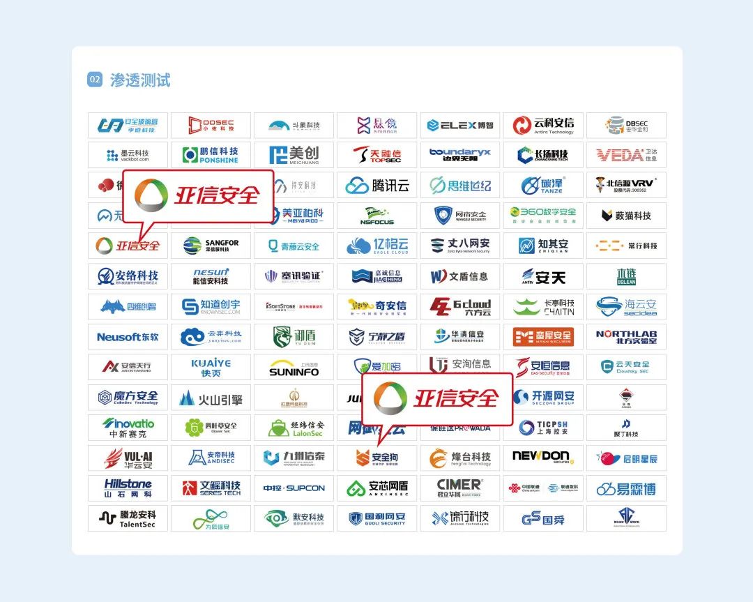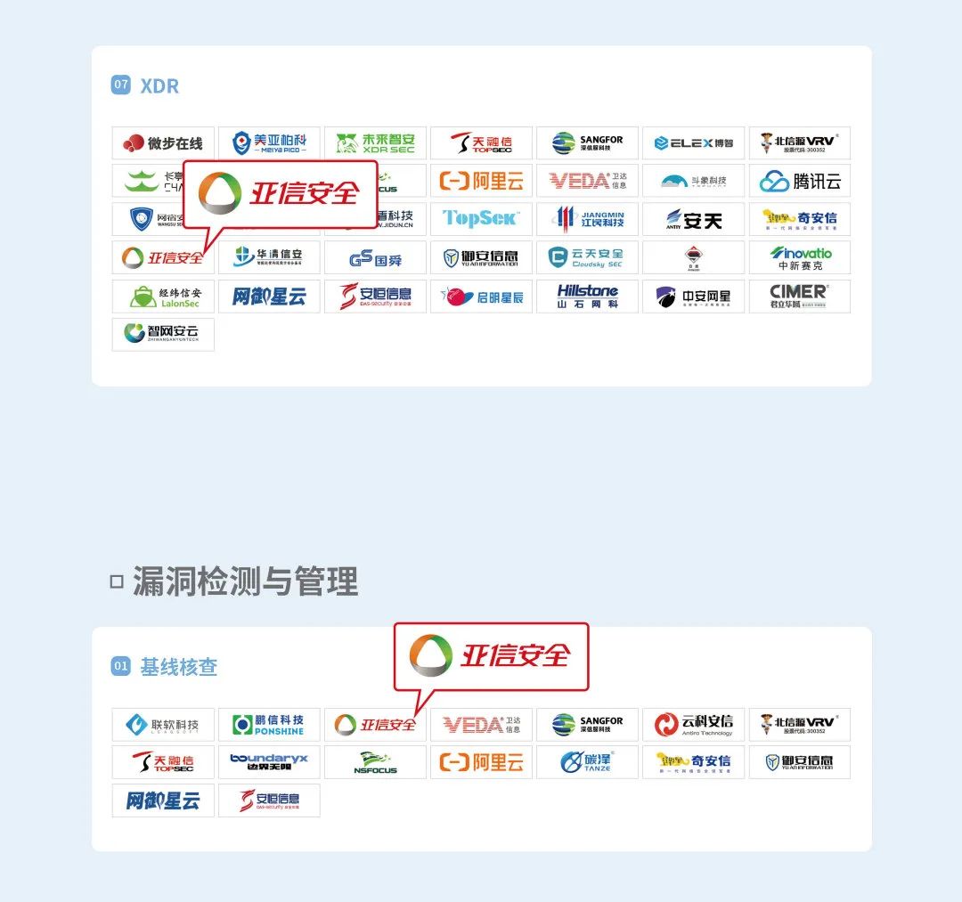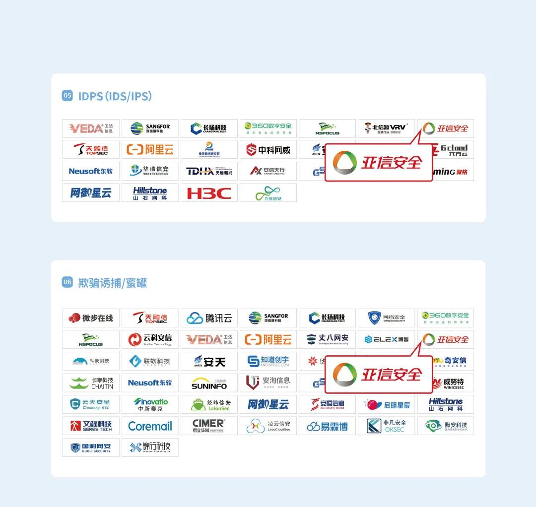 成功入选应急响应与重保服务细分领域。一直以来,亚信安全作为国家网络安全的重要支撑力量,积极参与并圆满完成了历届两会、2023大运会等诸多国家重大活动的网络安全保障工作,多次获得“突出贡献称号”等荣誉。