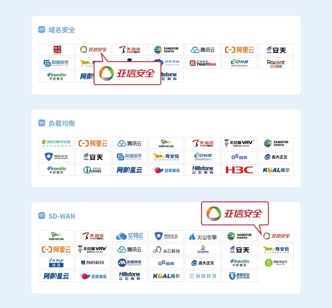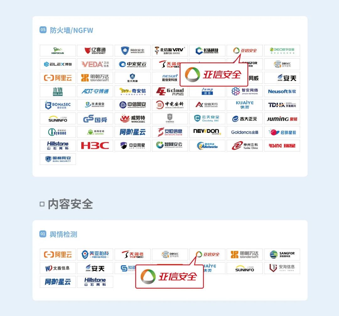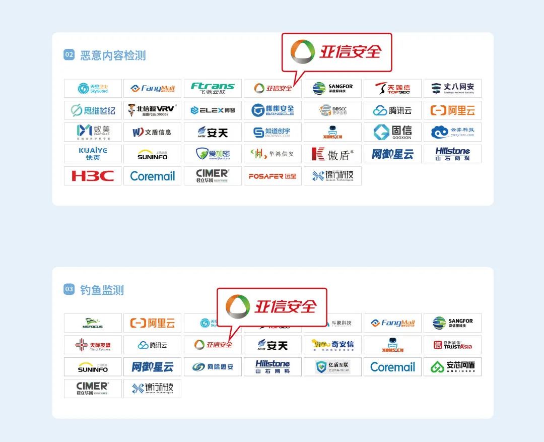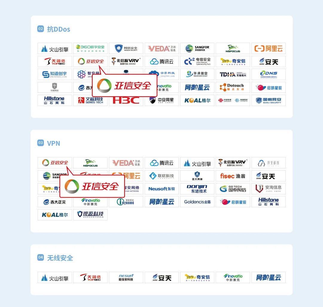 成功入选应急响应与重保服务细分领域。一直以来,亚信安全作为国家网络安全的重要支撑力量,积极参与并圆满完成了历届两会、2023大运会等诸多国家重大活动的网络安全保障工作,多次获得“突出贡献称号”等荣誉。