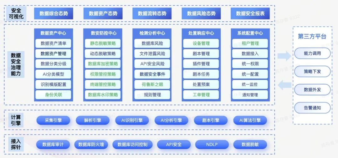 采用基于AI大模型对多类型数据资产进行统一管理和分类分级,实现全网资产的测绘和敏感数据的有效识别,为企业提供了一个清晰的数据资产视图。