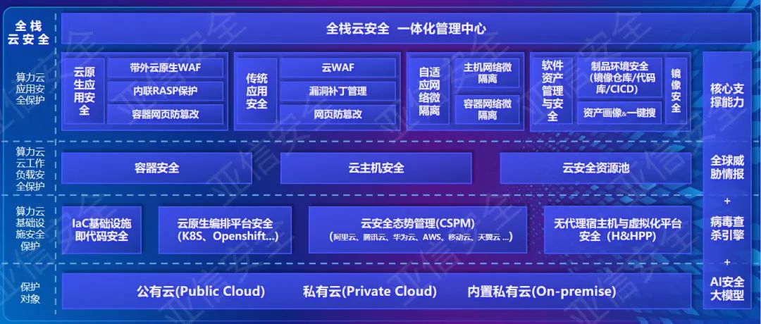 亚信安全“全栈一体”的ForCloud算力云安全具有以下技术优势: