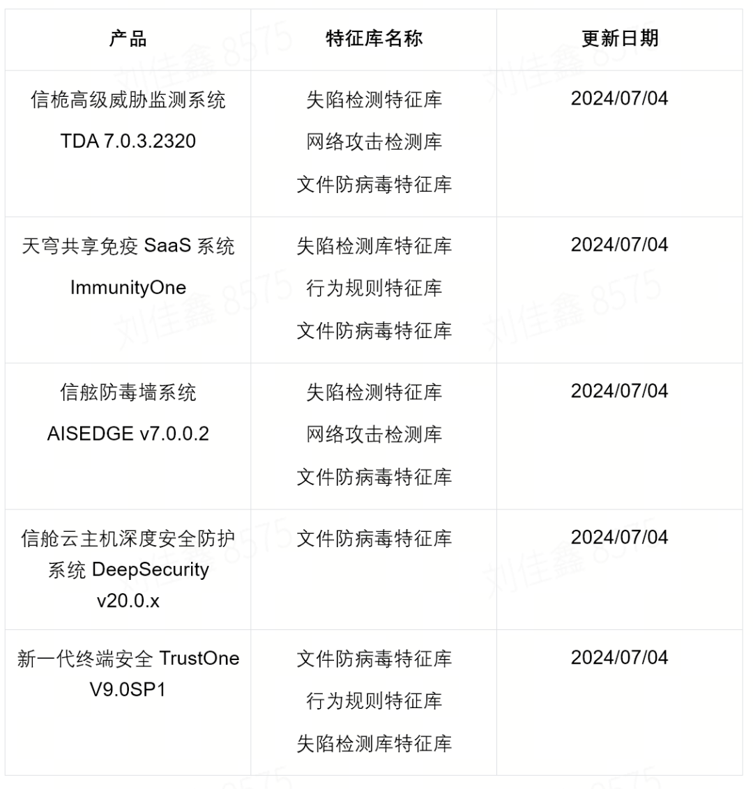针对全球勒索事件频发的威胁态势,亚信安全推出勒索治理方案,针对近期活跃勒索事件已具备检测能力,请提醒客户及时升级产品及特征库。最新产品版本和特征库列表如下: