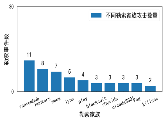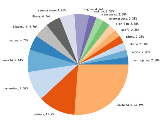 图1.7 2023年下半年至今攻击中国区域的勒索家族分布图