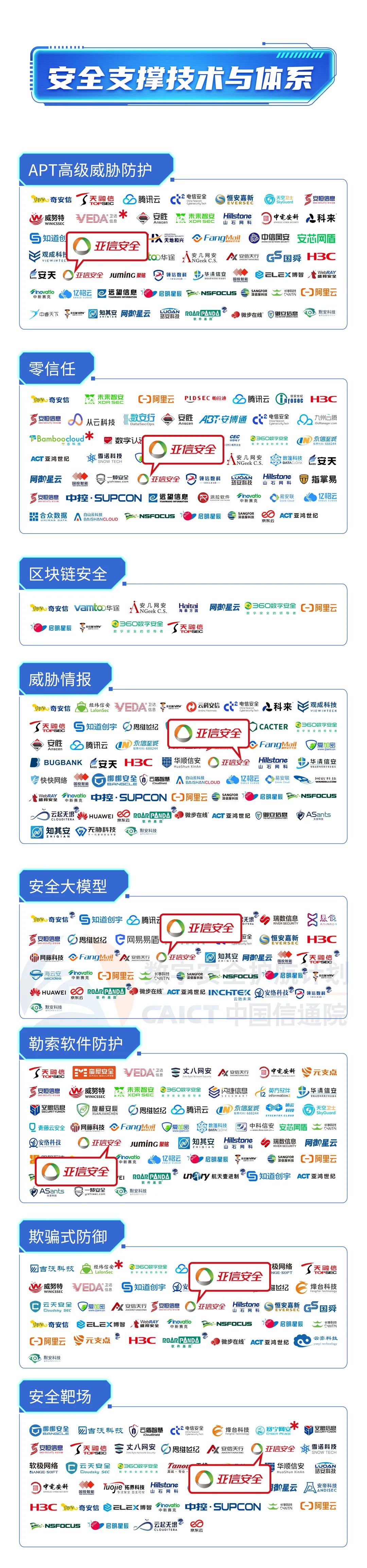 在“数字安全护航计划”的背景下,中国信通院2024第二期《数字安全护航技术能力全景图》正式发布。此次全景图评选工作旨在全面展示国内数字安全领域的优秀企业和先进技术,为行业提供权威参考,经评审评估,亚信安全凭借全面的产品技术能力,成功入选15大安全领域、92个细分领域。
